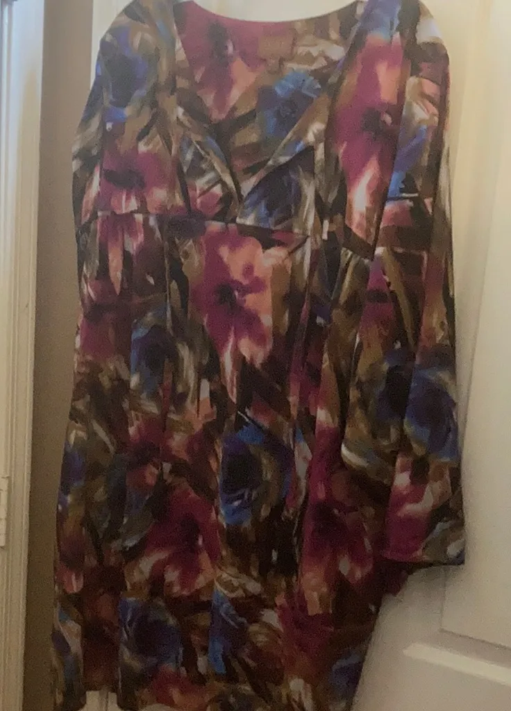 Done in a watercolor print this is a ladies dress from lane Bryant NB0073