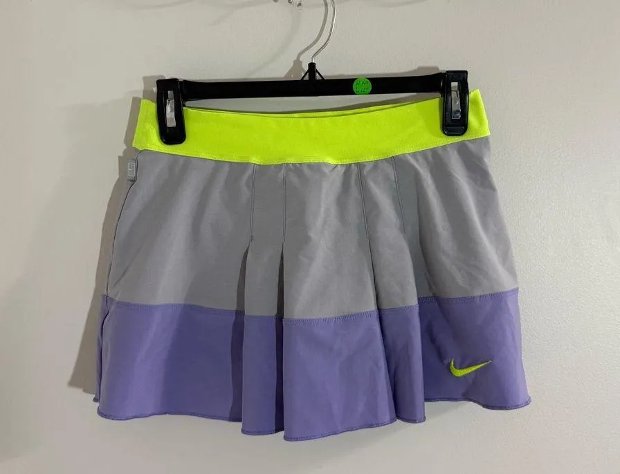 Nike Dri-FIT skirt in gray with vibrant neon yellow accents. Ideal for active wear.