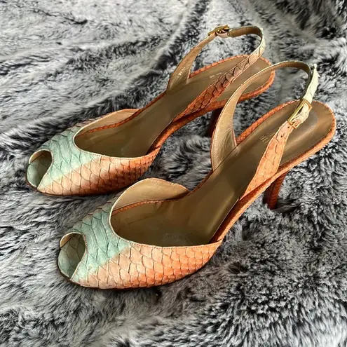 Gorgeous Stuart Weitzman Multi Color, Pastel Colored, Leather Snakeskin Slingback High Heel Sandals... Show more