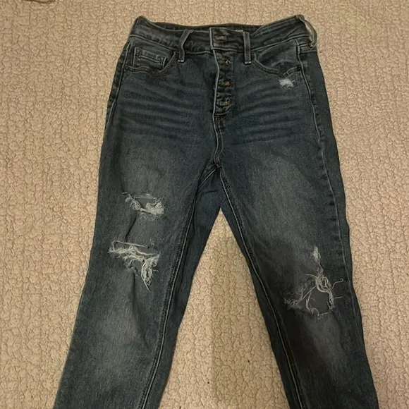 Old Navy Rockstar skinny jeans. Distressed with raw finish hem Button down fly. Five pocket styling.... Show more