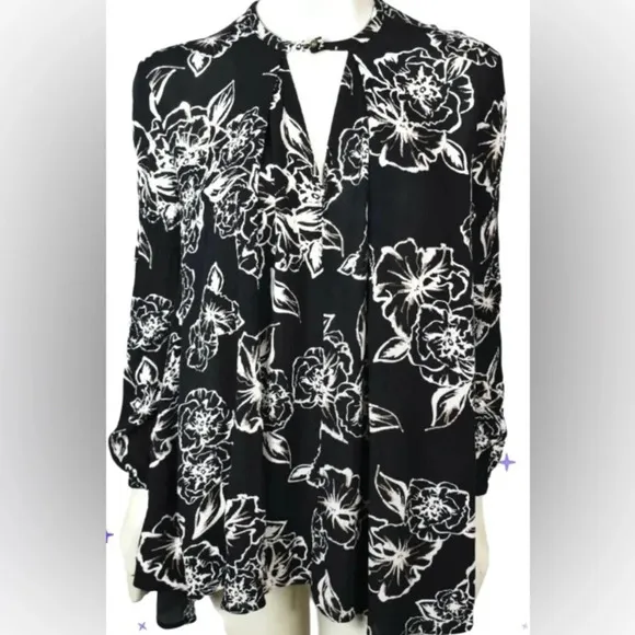 Free People black and white foil floral print oversized tunic dress, size XS. This is a long sleeved... Show more