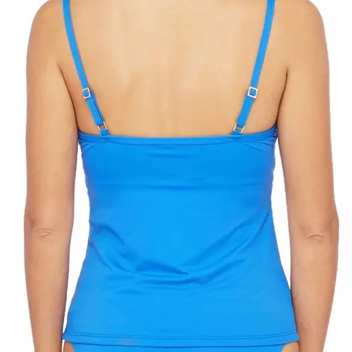 La Blanca "Island Goddess" tankini top with crossover wrap trim. Molded cups and underwire for support. Adjustable straps. Pullover style. Nylon/spandex. Hand wash. Imported. La Blanca is known for well-constructed suits that emphasize fit and comfort. See pictures for measurements and details. Fast shipping!