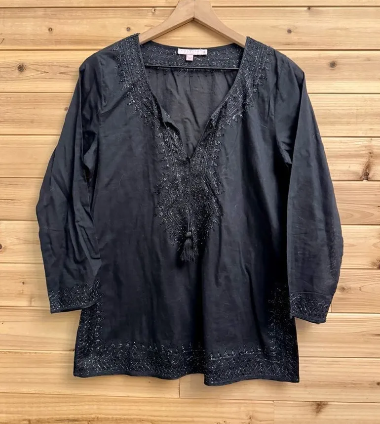 Calypso St Barth Size Small 3/4 Sleeve Tie Front Metallic Blouse Silver - $20 - From Sadie