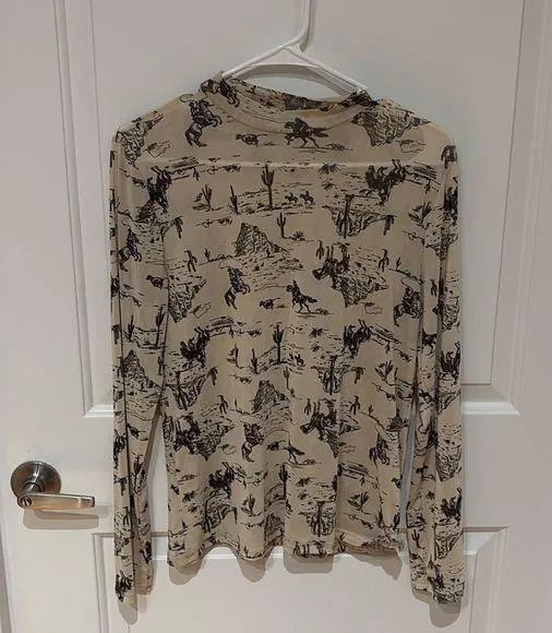 Tan mesh Rodeo patterned long sleeve - western Size M - $18 - From Ashley
