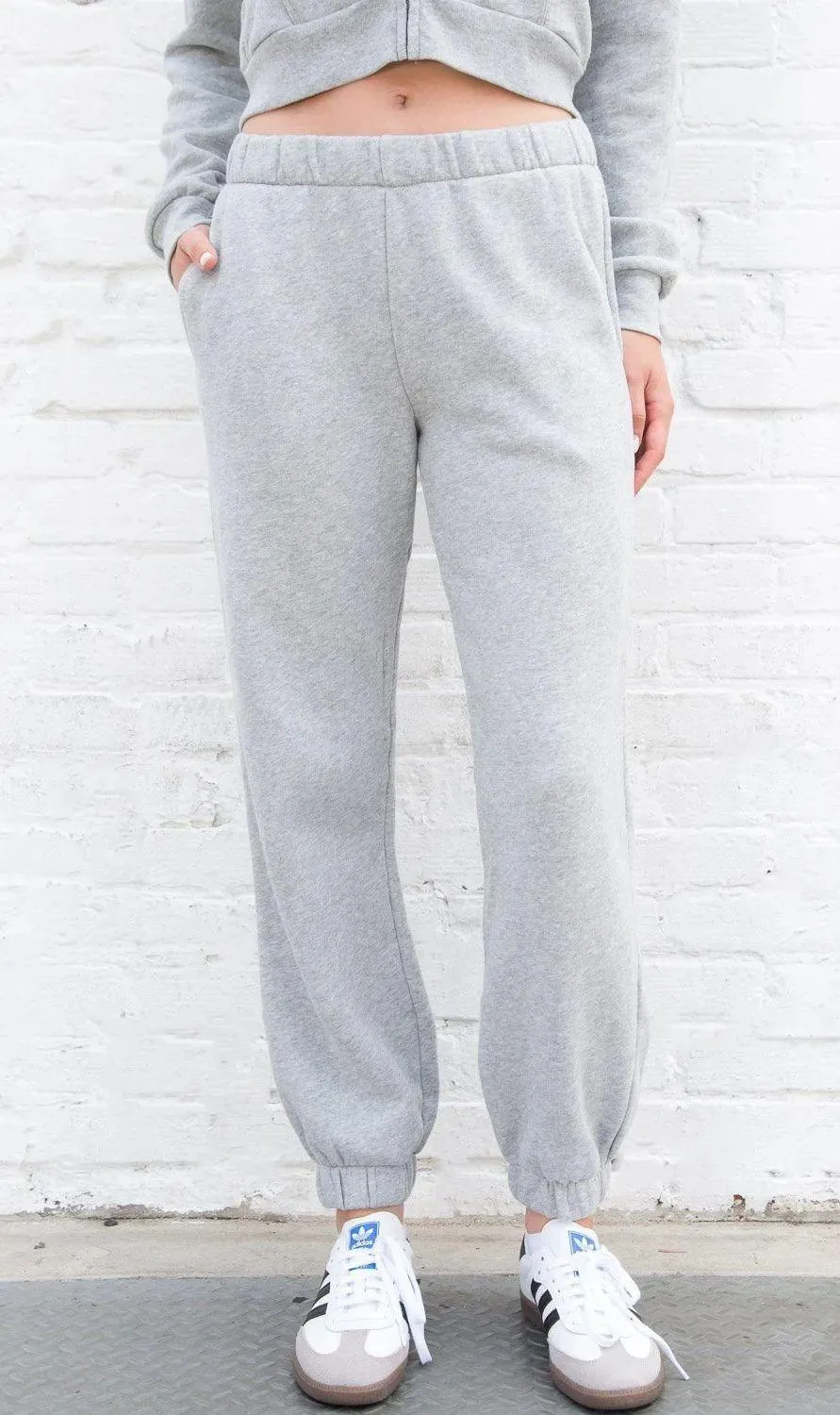 Grey brandy melville joggers. Always hang dried. Good condition Small hole