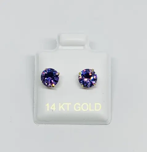 Real 14k Gold Studs purple violet earrings 6mm - Aretes Morado Violeta De Mujer - $99 New With Tags - From BetheJoyBy