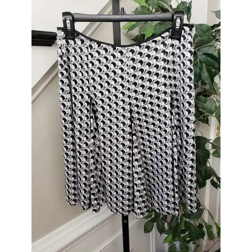 Add a touch of retro flair to your wardrobe with this black and white pleated A-line skirt. Featuring a bold geometric pattern and lightweight polyester fabric, it offers a flowy silhouette and full lining for comfort. Perfect for work, brunch, or casual wear. Easy to care for and designed to move with you. Key Features : Style: Pleated A-Line Skirt Color: Black and White Geometric Print Size: Approx. Medium (see measurements) Material: 100% Polyester (shell & lining) Fit: Flowy, relaxed silhouette Care: Machine washable, line dry Waist: ~14.5 in | Length: ~19.5 in