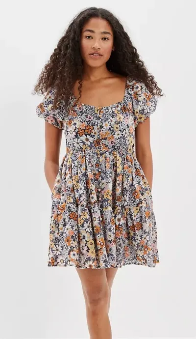 Cute as a button and perfectly patterned, this mini dress is a bright summer staple. Made from soft... Show more