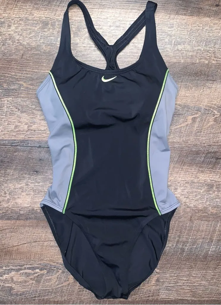 Nike Color Surge Powerback Black/Green One Piece Swimsuit Bathing Suit Size Medium, Approximate meas... Show more