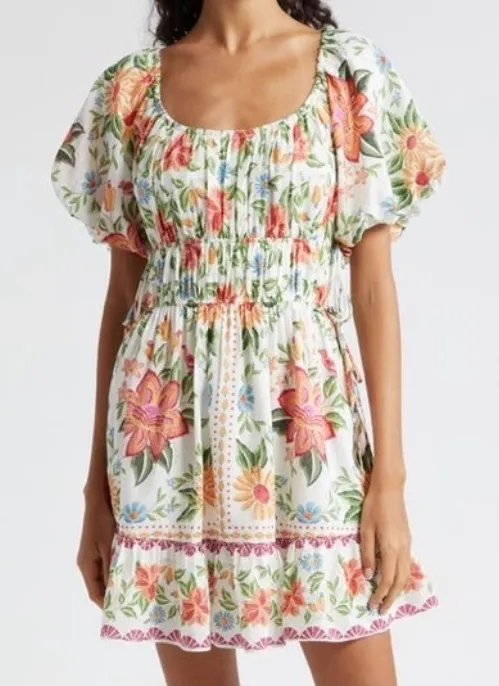 NWOT Farm Rio Bloom Garden Short Sleeve Mini Dress in White Floral Print Orange - $145 (26% Off Retail) New With Tags - From Kelsey