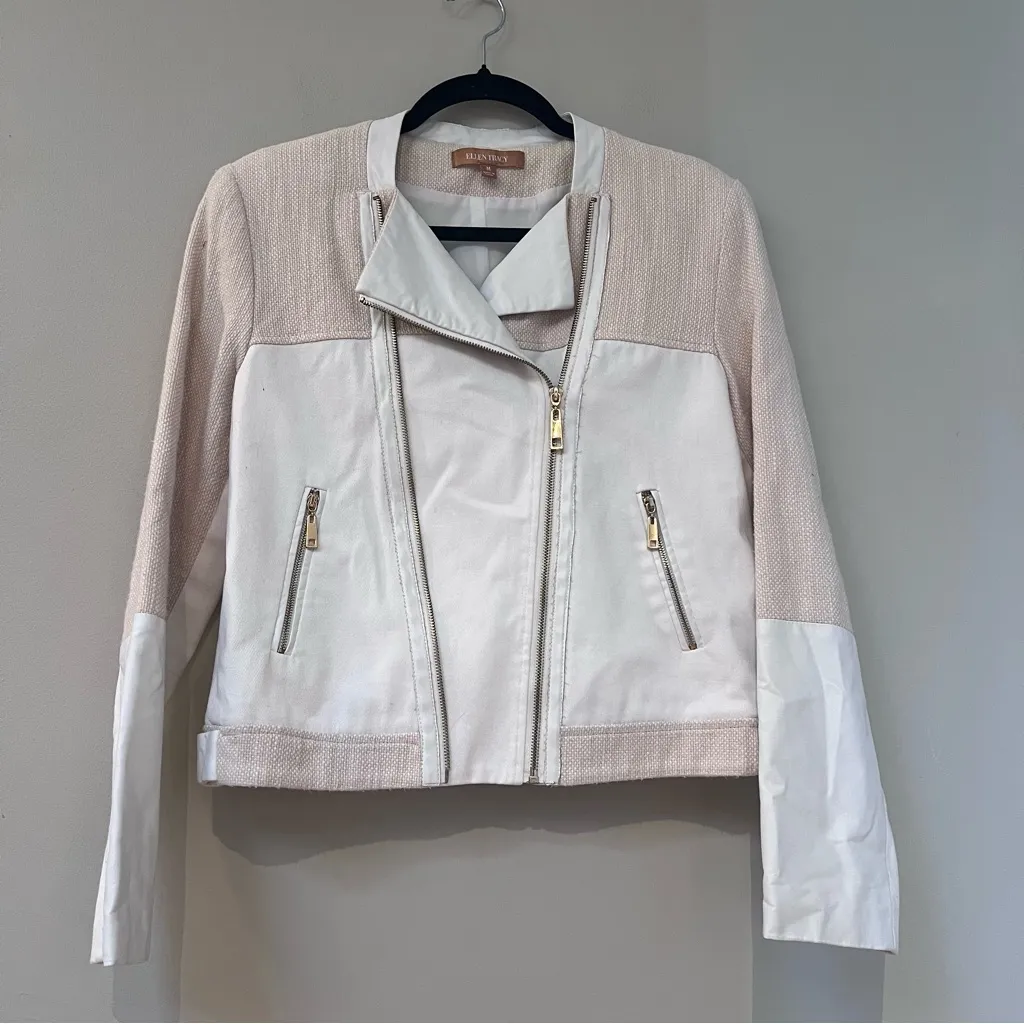 Ellen Tracy Off White Asymmetrical Zip Faux Leather Tweed Crop Jacket Size M - $24 - From Lauren