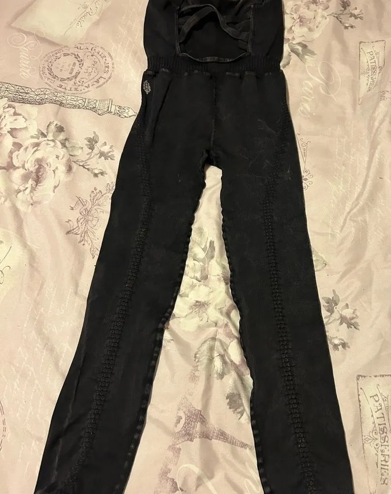 New with out tags Free People Movement Good Karma Onesie - MSRP $98 - New without tags - Color: Washed Black - 7/8 cropped length - Form-fitting silhouette - Stretch fit look at all pics due to mineral wash