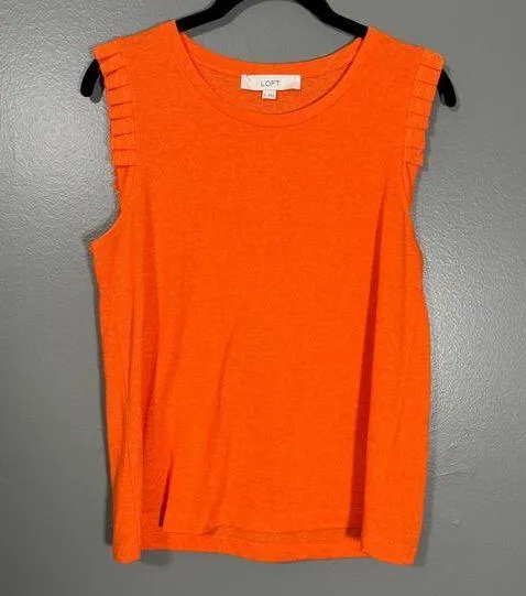 Women's bold sleeveless knit top by Ann Taylor LOFT. This bright orange top has a pleated detail at... Show more