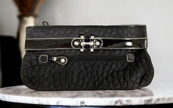 Vera Bradley Quilted Clutch Black Patent Leather Purse Silver Tone Accents in excellent condition.... Show more