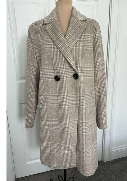 Sam Edelman Wool-Blend Double-Breasted Cutaway Coat Beige/Tan Feminine Plaid Size S Poly, Acrylic,... Show more