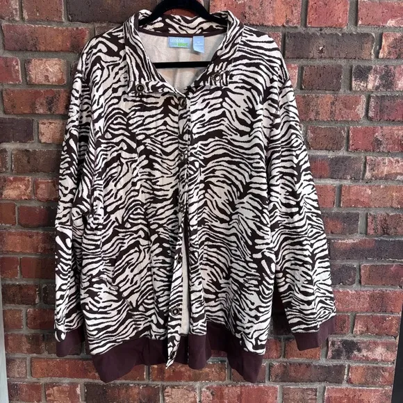 Liz & Me Sport womens animal print zebra snap front lightweight jacket brown 3X - $25 - From Christine