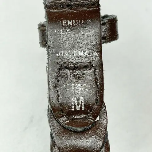 📏 Size: Medium (M) 🤍 Color: Brown 👗 Style: Vintage Belt Gorgeous vintage brown woven leather belt that's perfect for adding retro flair to any outfit! The intricate braided construction and classic silver-tone oval buckle make this a timeless wardrobe staple. Details: - Length: 34.75" (not including buckle), 36" (including buckle) - Width: 0.75" - Buckle: 1.5" x 1.33" silver-tone oval - Materials: Genuine leather with woven design - Authentic vintage piece Condition: Preowned with authentic leather wear and aging. Hardware shows finish wear consistent with vintage pieces. Perfect for pairing with high-waisted jeans, vintage dresses, or adding a boho touch to modern looks! 8507-4