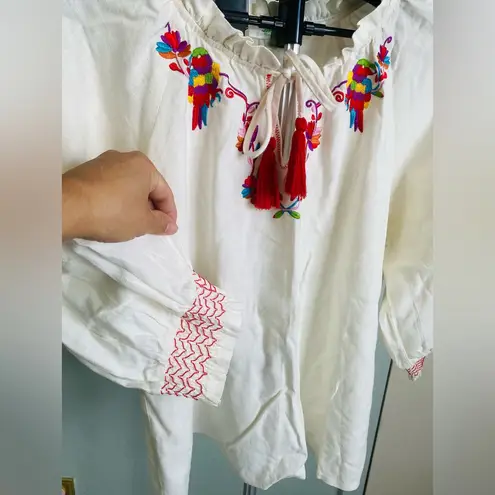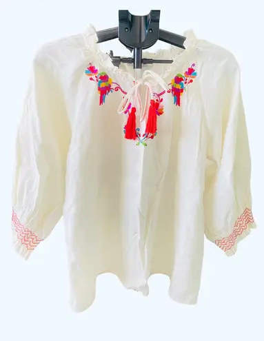 Jade by Melody Tam Ivory Embroidered Blouse Size Medium Line. Cotton Blend Red - $45 - From Jean