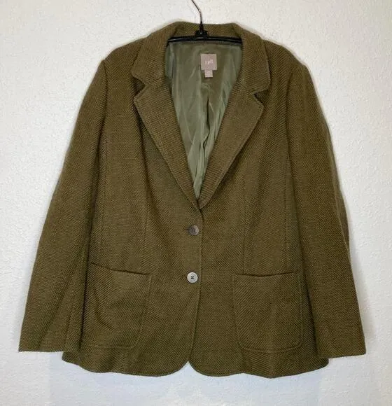 J. Jill women’s woven green blazer jacket. Lined. 2 button closure. Front patch pockets. Long sleeve... Show more