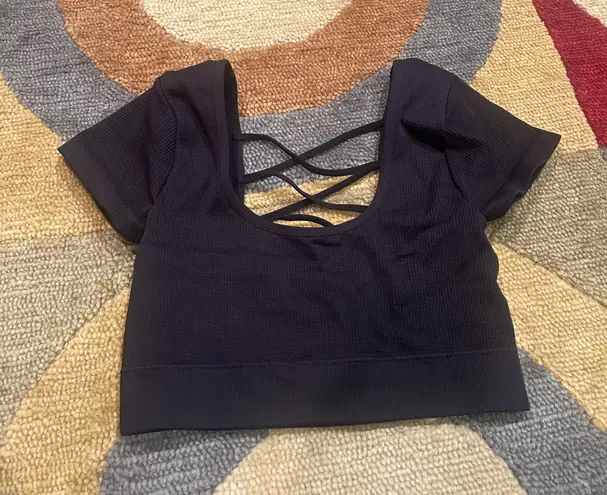 NWOT Aerie Black Seamless Ribbed Short Sleeve Crop Top Strappy Back Size Small Never worn Offer... Show more