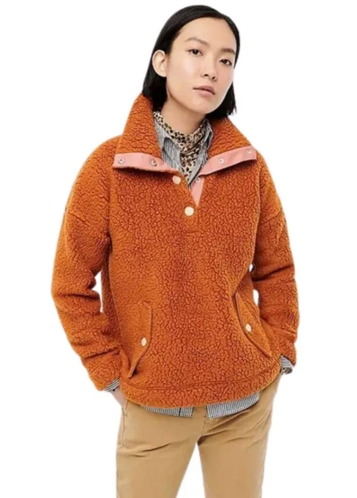The J. Crew Snap Collar Sherpa Sweatshirt is a stylish and versatile pullover jacket for women in si... Show more