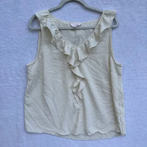 Chic sleeveless blouse with ruffle detail. Soft and stylish for versatile wear.