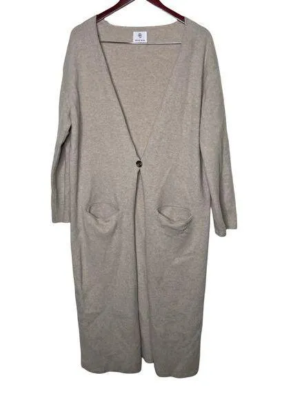 . Gently used condition . Perfect spring early summer cozy shrug. ivory white wool blend V-neck front button fastening two front pockets long sleeves straight hem Retails $595