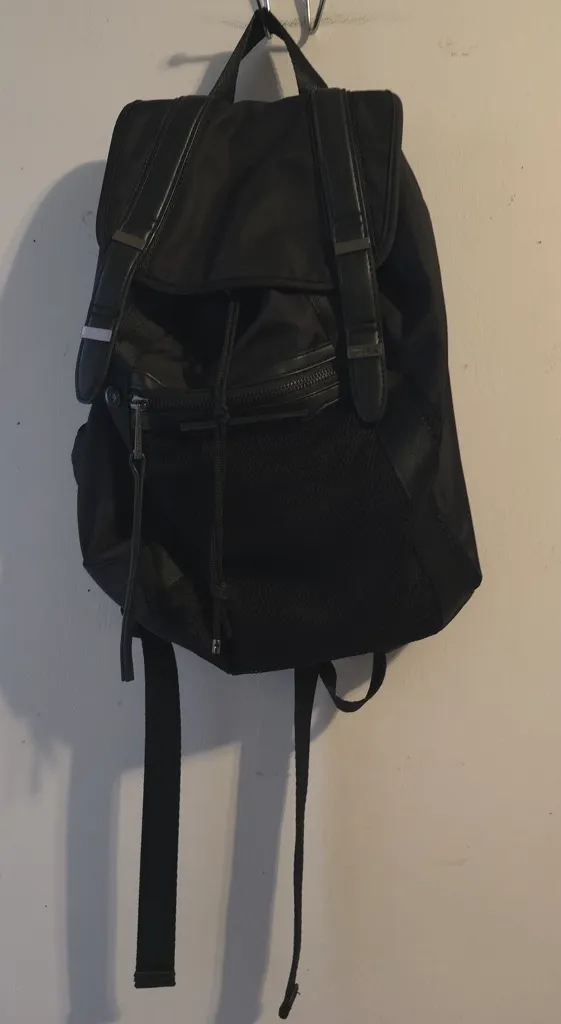 Chic black mesh bag with zip closure. Elegant design by French Connection.