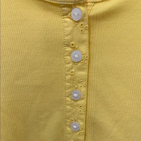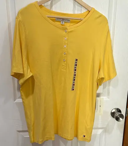 Bright yellow short sleeve tee. Button detail on front. Classic Tommy Hilfiger style.