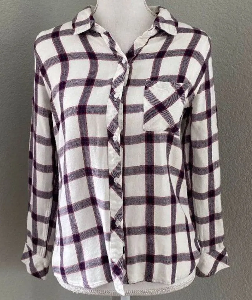 Rails Hunter White, Red, & Navy Blue Plaid Long Sleeve Flannel Shirt Size Small Brand: Rails Type: Tops Department: Womens Size: Small Style: Button Down Shirt Color: White Blue Red Size Type: Regular Sleeve Length: Long Sleeve Garment Care: Machine Washable Country/Region of Manufacture: China Condition: Preowned, Excellent Used Condition 100% Rayon Comfort, Pockets, Casual wear Measurements: Pit to pit: 17 in Length: 23 in 594