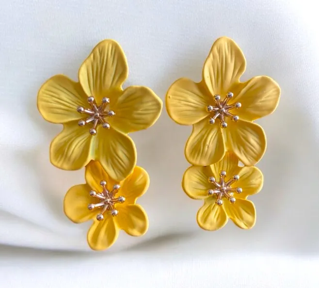 1 Pair Yellow Double‎ Layer Flower Stud Earrings - Elegant Two-Tier Design - $13 New With Tags - From Mon