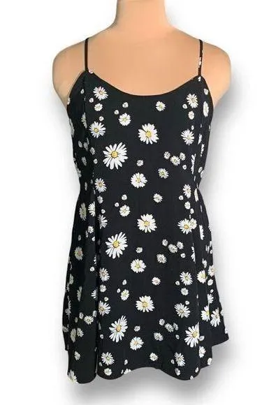 Y2K Mudd Slip Dress Vintage Size XL Black sleeveless mini Charming white yellow daisy print Adjusta... Show more