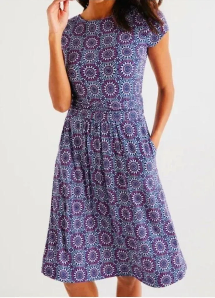 Boden Amelie Jersey Knit Short Sleeve Dress Blue White Pink Pattern Size 2 J0326 - $40 - From Abigail