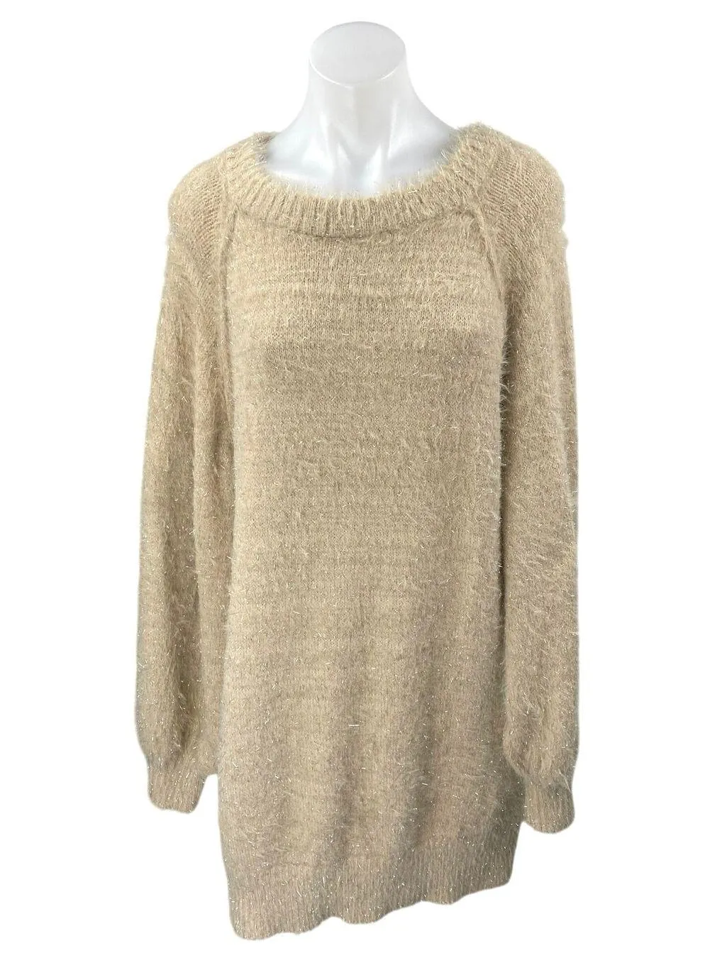 Easel Women's Brown Tan Fuzzy Faux Fur Long Sleeve Knit Mini Sweater Dress Size S Size: S Condition... Show more