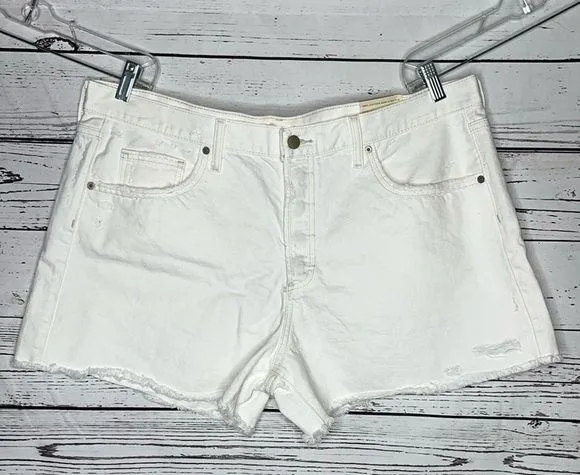 Universal Thread Size 16 White Distressed Mid-Rise 90s Baggy Shorts. Belt Loops. Button Fly Closure.... Show more