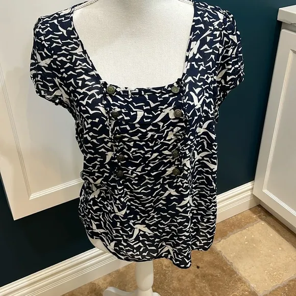 So many features on this super cute blouse! Square neckline, front placard with buttons on each sid... Show more