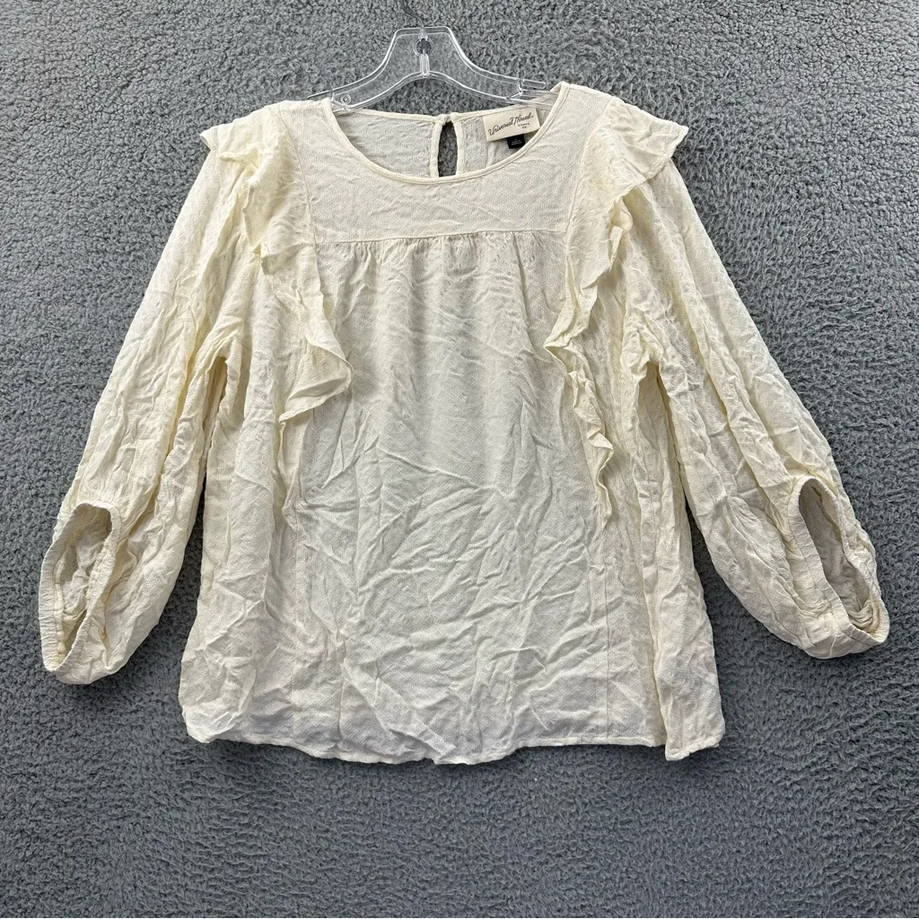 NWT Universal Thread 3/4 Balloon Sleeve Blouse Top Cream Peasant Boho Ruffle S Pullover with back b... Show more
