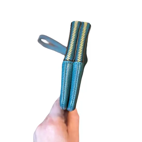 Coach Dempsey double zip wristlet in soft pebbled leather. Beautiful teal color with gold-tone hardw... Show more