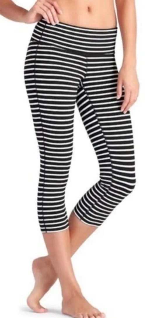Athleta Black & White Striped Chaturanga Cropped Leggings Tights Pants Capris size XXS Excellent con... Show more