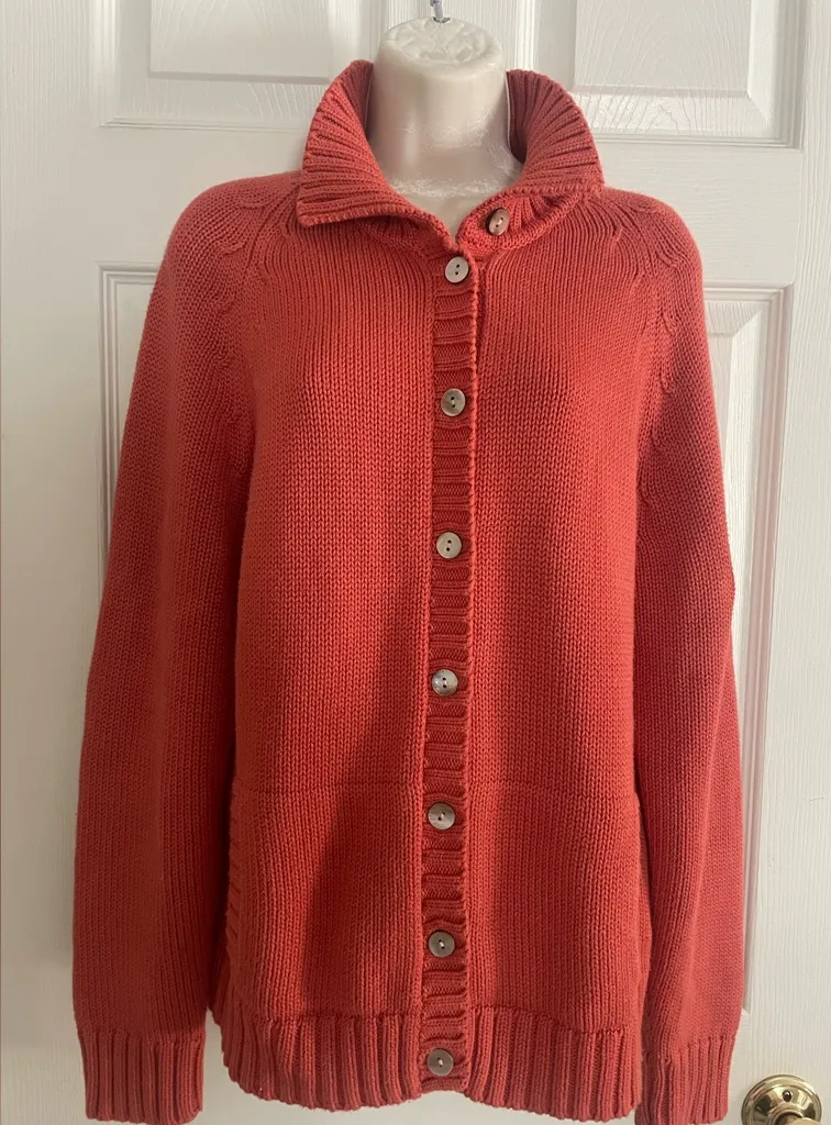 Lands’ End Burnt Orange Classic Collared Button Up Sweater Size Large - $31 - From Tracey