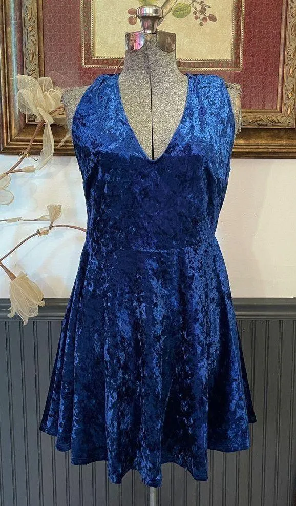 Make your debut in the Solo Album Navy Blue Backless Velvet Skater Dress from Lulus. Soft, crushed v... Show more