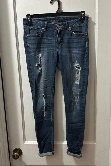 Stylish Jennifer Lopez skinny jeans. Distressed design. Classic blue color. Perfect for casual wear.