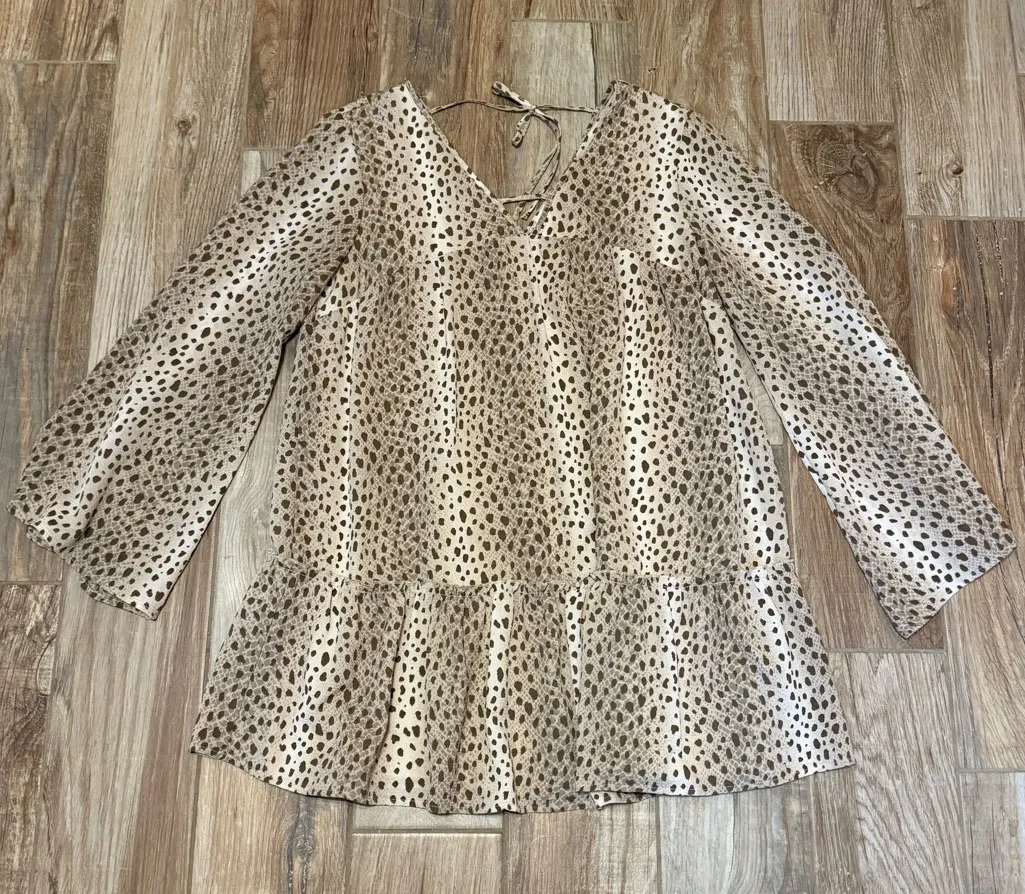Altar'd State Leopard Printed V Neck Long Sleeve Swing Tunic Mini Dress Tan - $35 - From Deidre