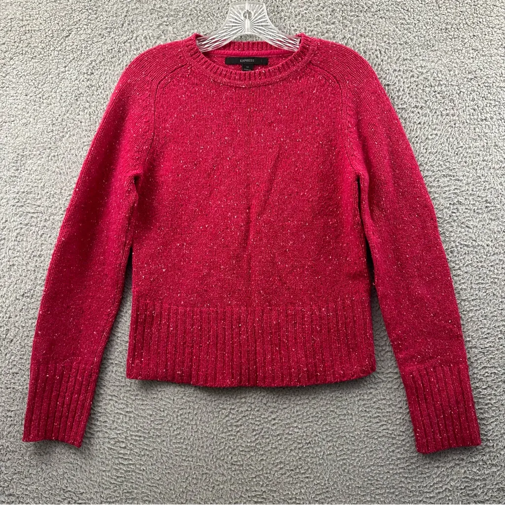 Y2K Express Lambs Wool Long Sleeve Knit Sweater Preppy Cropped Retro Women's M Pullover Crew neck L... Show more
