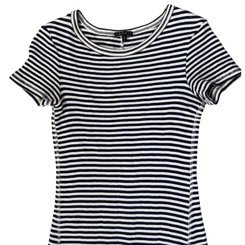 This Theory Onissa dress features navy and white stripes in a stretchy ribbed 100% cotton knit. Desi... Show more