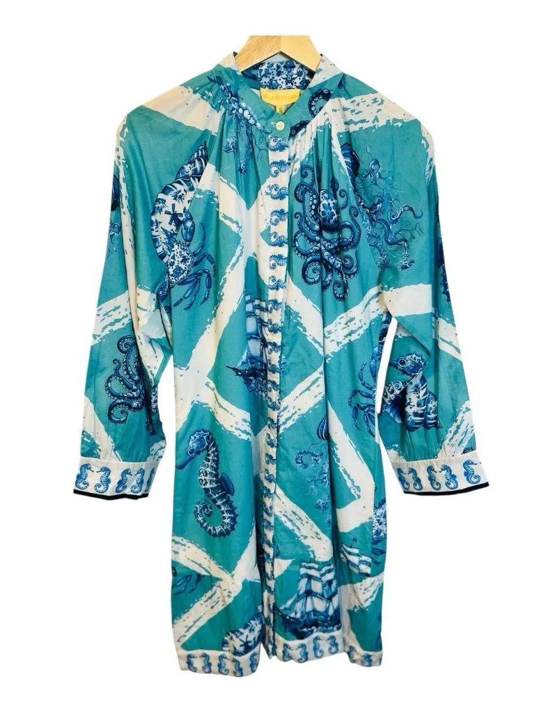 Brand: IslaPayal Color: Turquoise Size: Small Material: 100% Cotton Approximate Measurements: Armpit to armpit: 20” Length: 38” Condition: New with tags. MSRP: $188 Raglan sleeves- that flatter broad shoulders Full sleeves with an elastic cuff at the end Border trims for an elevated look Pockets on the side seams Wash care- Wash by hand in cold water. Hang dry. Gentle iron if needed. Clean and smoke free home. Items ship out quickly and with much care. Please reach out with any questions. Also, check out other items from this store. New items added daily!