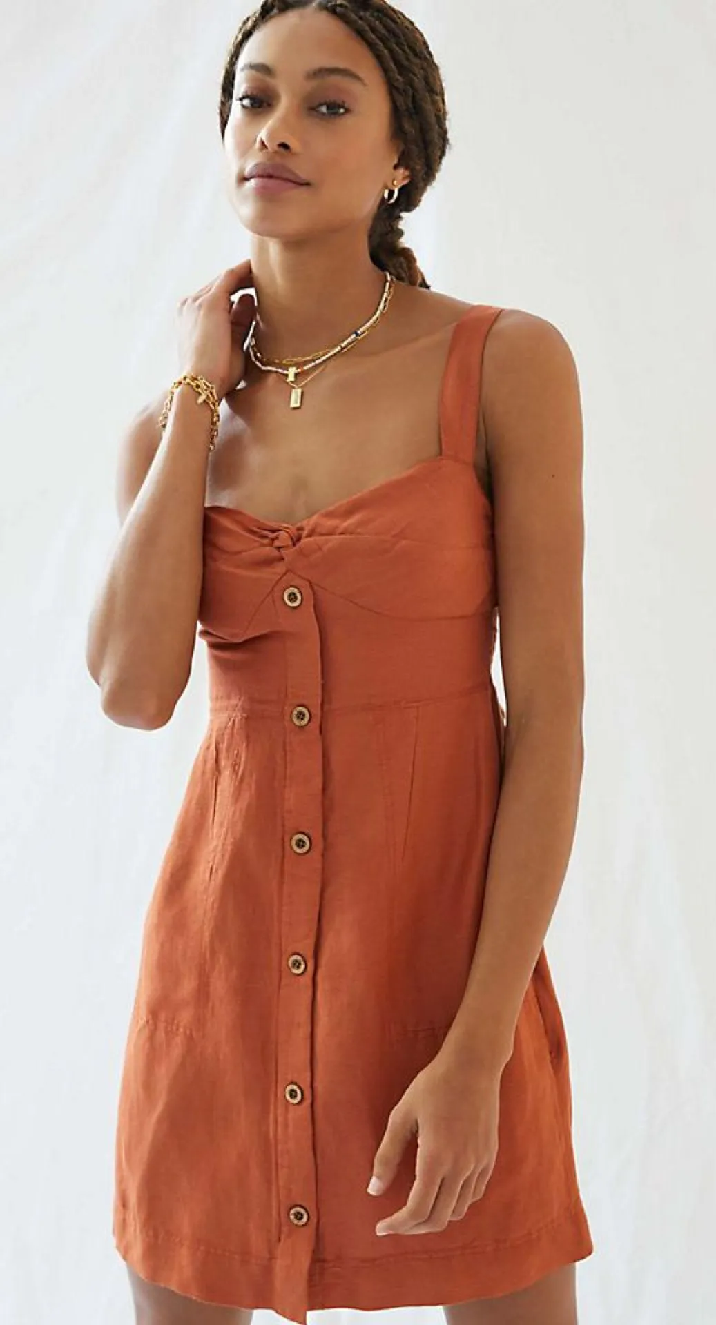 Anthropologie Maeve Twist-Front Mini Dress New with tags retail $148 Size XS Color: BROWN Celebrate... Show more