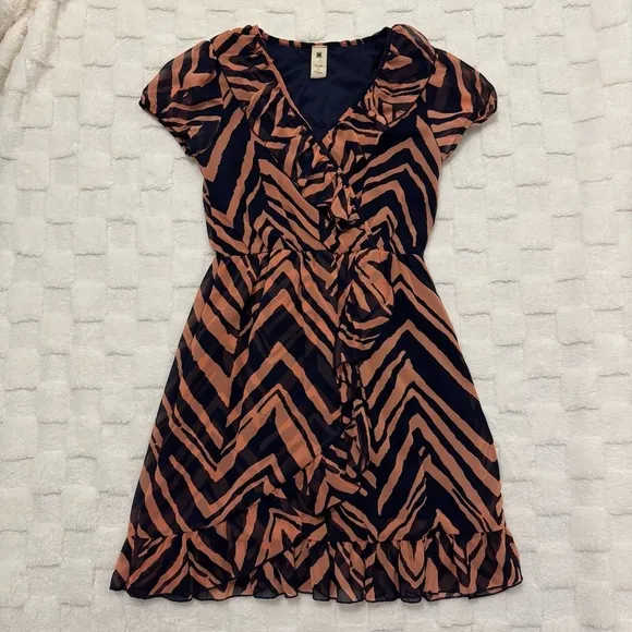 The Needle & Thread by Francesca’s Coral and Blue Cap Sleeve Ruffle Midi Dress is a vibrant and feminine piece, featuring a flattering midi length with delicate ruffles and cap sleeves. Designed in a beautiful coral and blue color combination, this dress offers a chic, lightweight fit perfect for a variety of occasions. Ideal for a women’s medium size, it combines elegance with a playful touch. Brand: Needle & Thread Size: Women’s Medium Colors: Coral and Navy Blue Flowy dress with ruffles Cap sleeves Deep V-Neck in the front, safety pin included to hold fabric together but no additional damage was done to this part of the dress This dress is preloved and in good condition! Minimal signs of wear and no damage. No damage on the safety pinned area, pin included to add more security to the front. Great quality, super cute dress!