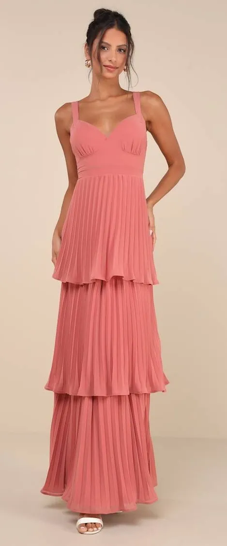 Get ready to have a maid of honor moment with the Lulus Luxe Perfection Rusty Rose Pleated Tiered Ba... Show more