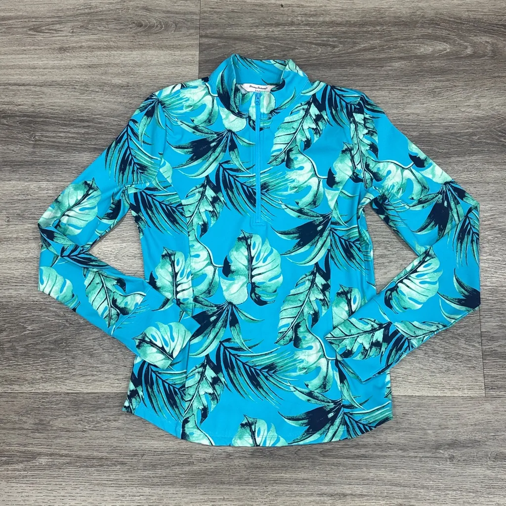 Aqua shirt with leaf design. Ideal for relaxed style. P18” L24” Excellent condition 1/4 zip Pock... Show more